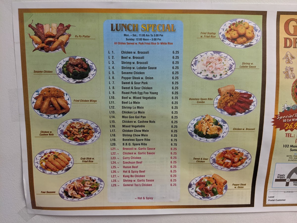 Another highlight is the Chow Mee Fun (Pancit), where options like Shrimp and Vegetable satisfy both the palate and the pocket. Golden Dragon’s reputation for great portions and quick service has garnered rave reviews from locals. With a small but cozy dining area, many prefer takeout, making it the perfect spot for a satisfying meal anytime. Once you’ve tasted it, you’ll understand why regulars keep returning!